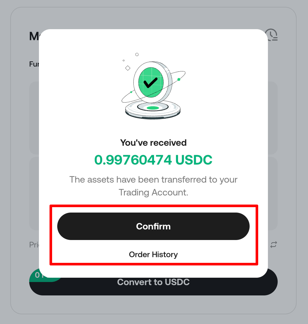 Após clicar em "Converter", você pode revisar os detalhes do pedido (como valor e preço) na tela de pré-visualização e confirmar o pedido. Por favor, note que a cotação está atrelada ao preço de mercado mais recente. Se a cotação expirar, ela será automaticamente atualizada, e o valor que você receberá será ajustado de acordo.