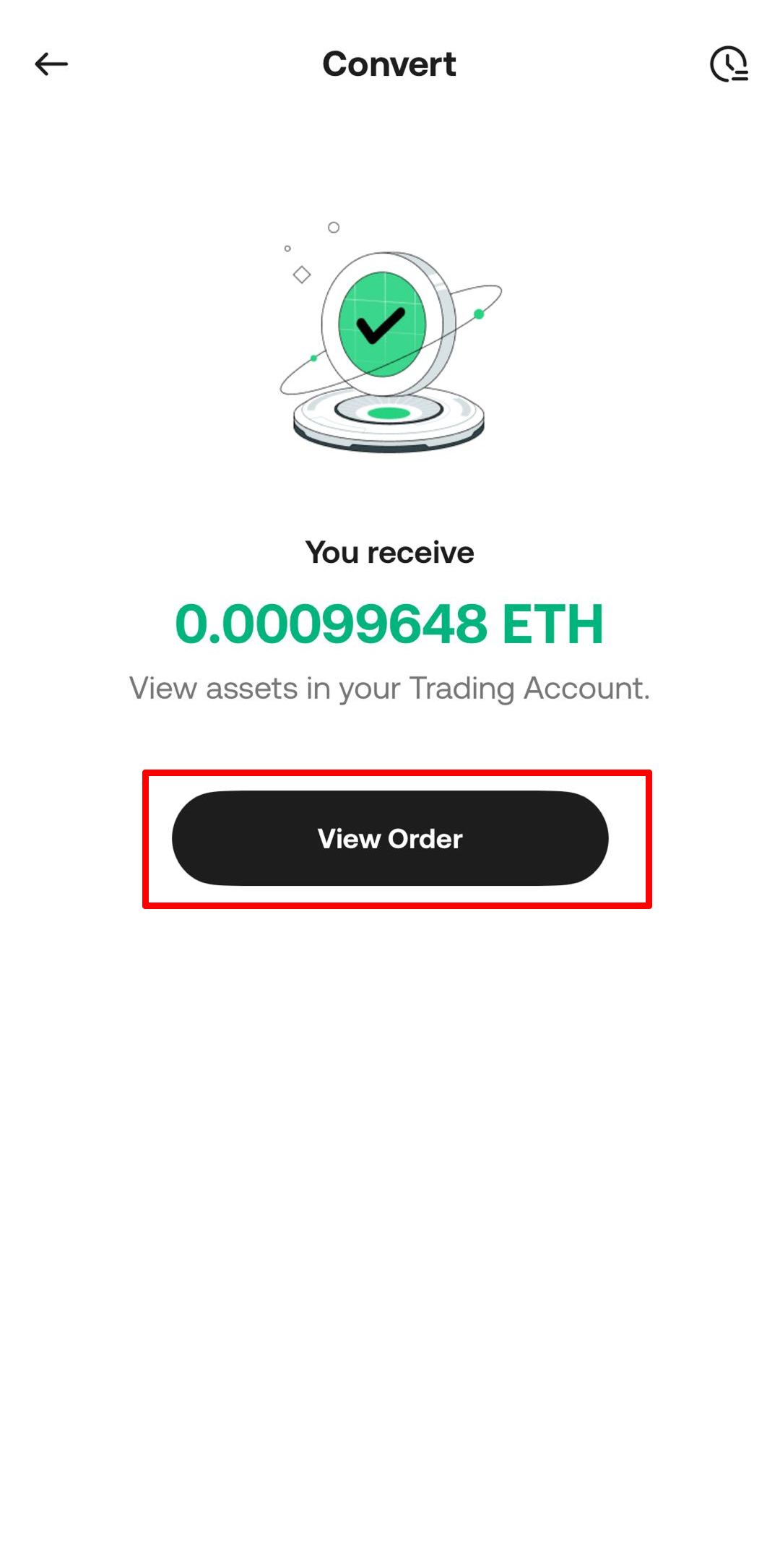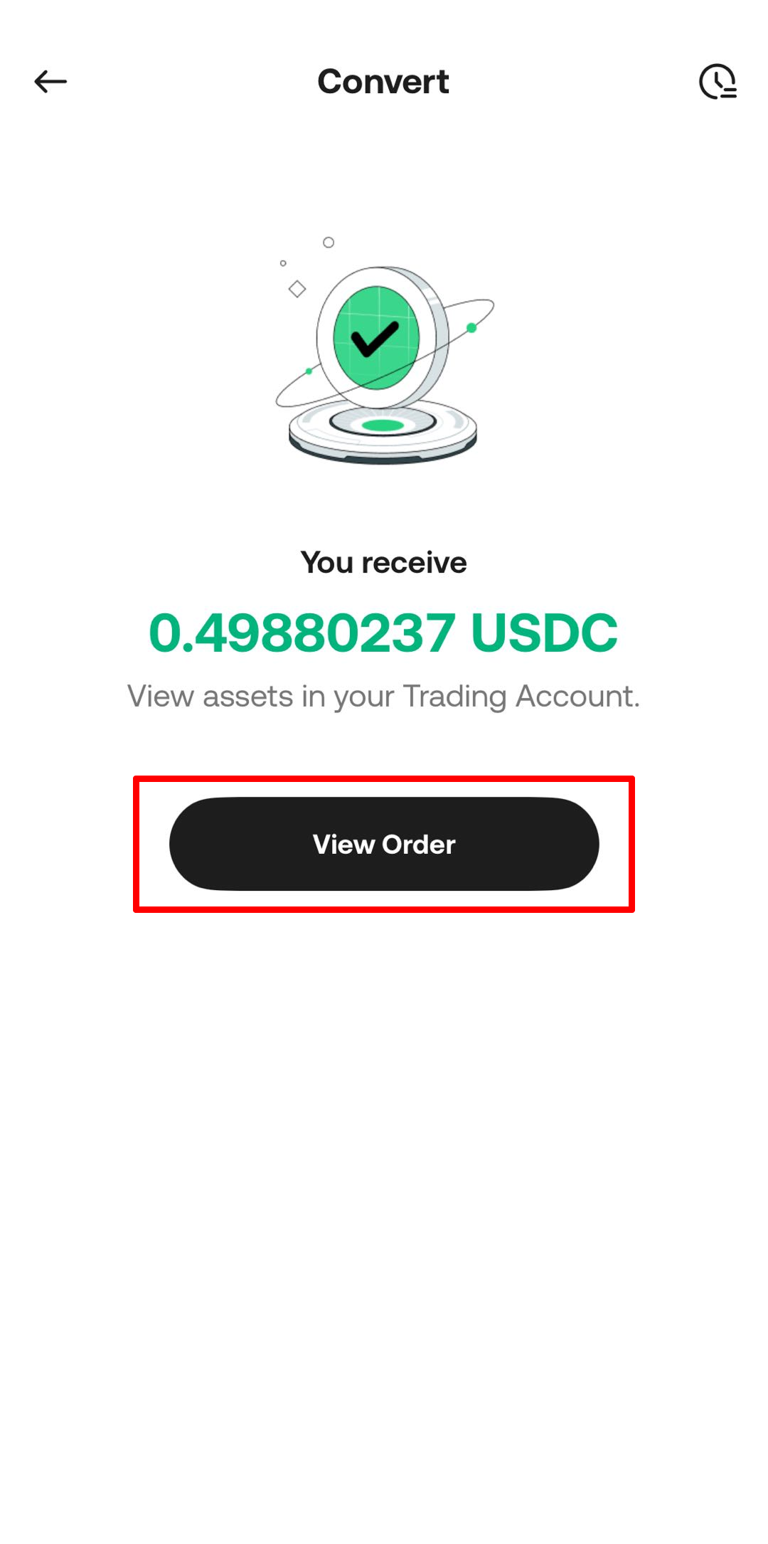 Uma vez que a transação é concluída, clique em "Histórico de pedidos" para ver os detalhes das conversões históricas.