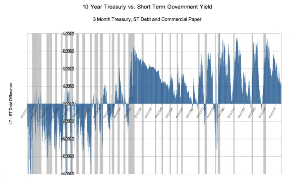 В тот период короткие ставки по сути соответствовали темпу роста номинального ВВП, тогда как долгосрочные ставки реагировали на инфляционные потоки, сопровождавшие технологический бум, в результате чего кривая доходности в среднем была перевернутой на 100 базисных пунктов, как показано на рисунке ниже.