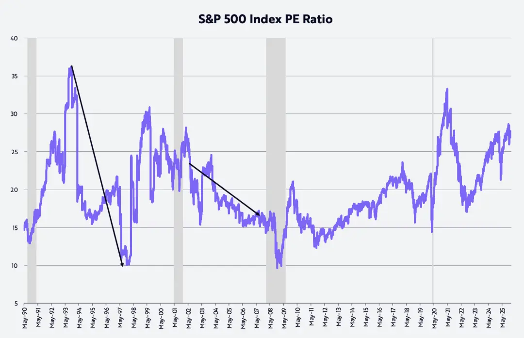 Многие инвесторы обеспокоены оценкой акций, которые сейчас находятся на высоком уровне по сравнению с историческими данными, как показано на графике ниже.