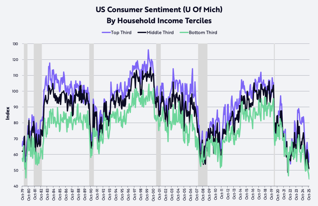 Согласно данным Университета Мичигана, уровень потребительского доверия у людей с низким и средним доходом упал до уровня середины 80-х годов, когда двузначная инфляция и процентные ставки серьезно подорвали покупательную способность и втянули американскую экономику в серию рецессий.