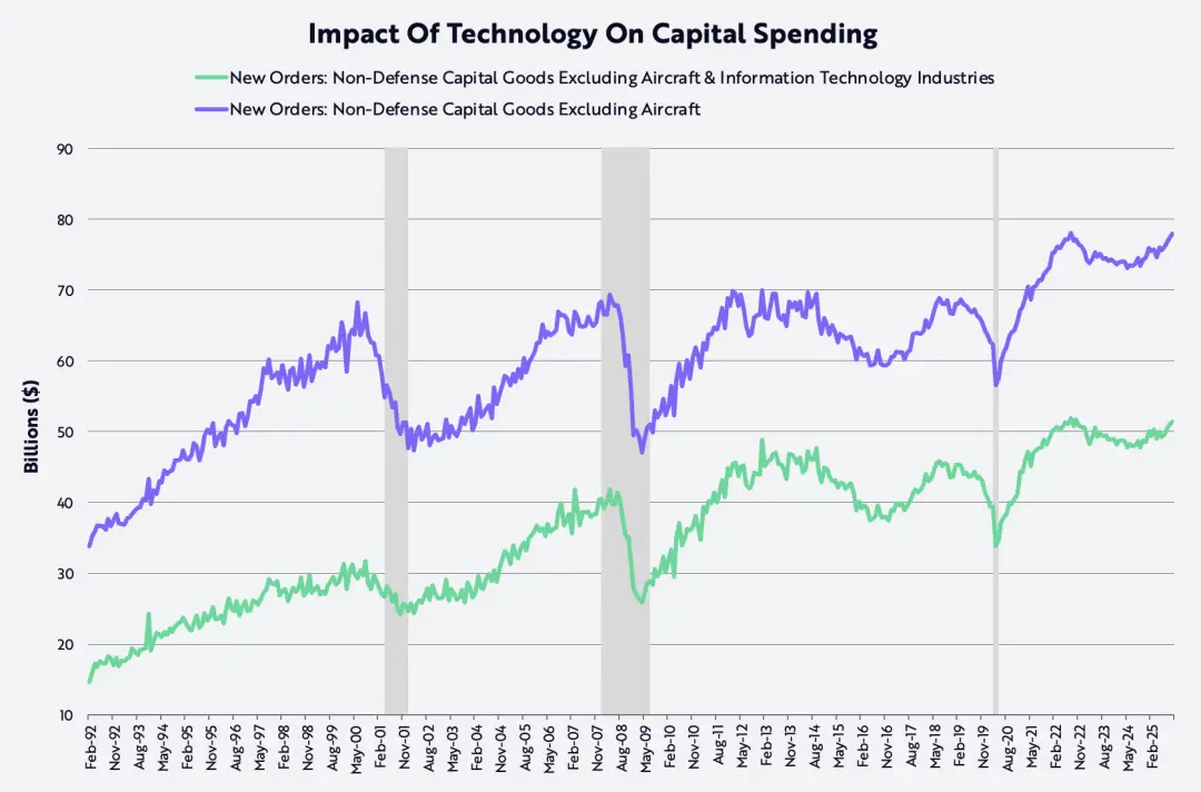 Это беспрецедентное сжатие привело к спаду в сфере жилищного строительства, машиностроения, капитальных вложений, не связанных с ИИ, а также среди населения со средним и низким доходом, как показано на рисунке ниже.