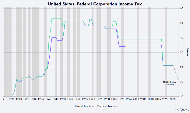 Скорость амортизации производственных мощностей, оборудования, программного обеспечения и расходов на исследования и разработки, осуществляемые на территории США, снизит фактическую налоговую ставку для корпораций до почти 10% — это будет одной из самых низких ставок в мире.