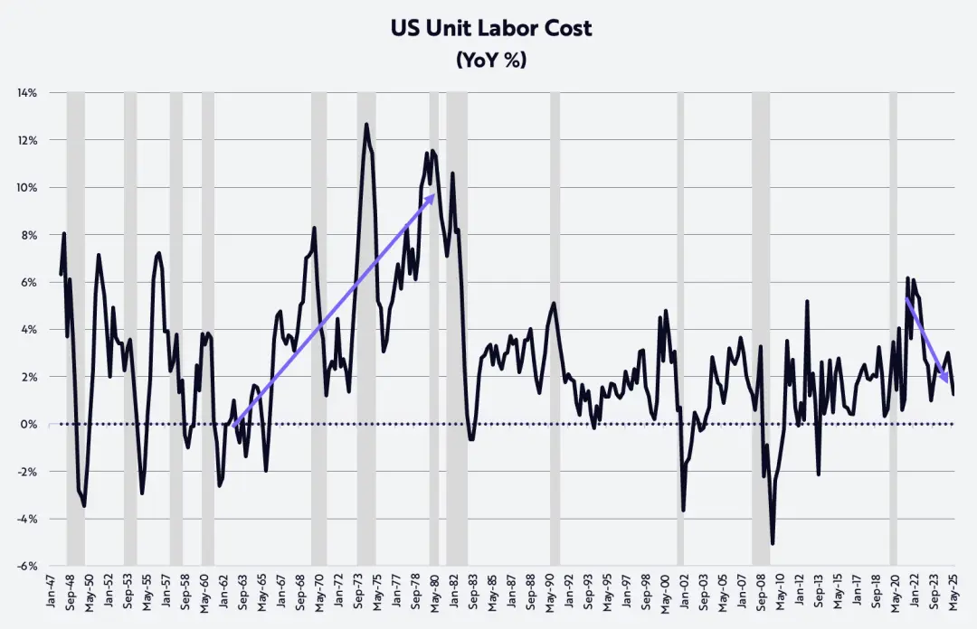 Если наши выводы о технически обусловленной революционной инновационной деятельности верны, то в ближайшие годы темпы роста производительности труда в несельскохозяйственном секторе могут ускориться до 4–6%, что дополнительно снизит инфляцию затрат труда на единицу продукции.