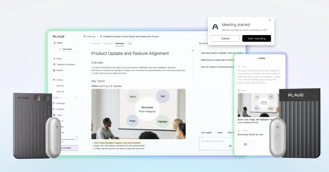 7 Но самым значительным шагом Plaud в этом году стал переход от акцента на аппаратное обеспечение к выпуску настольного приложения. С помощью одного клика вы можете записывать и подводить итоги, никого не привлекая внимания. Ранее AI-инструменты стремились к видимости, стараясь показать всем, что «я помогаю вам записывать заметки»; Plaud, напротив, стремится к «невидимости». Устройство бесшовно переключается между живым общением, телефонными разговорами и экранными встречами, а также прошло строгую сертификацию GDPR и ISO27001, пытаясь развеять страхи, связанные с утечкой данных. От умных диктофонов, записывающих колец до приложений — эволюция продуктов для записи за последний год была стремительна и представляла собой точное удовлетворение потребностей различных сегментов.