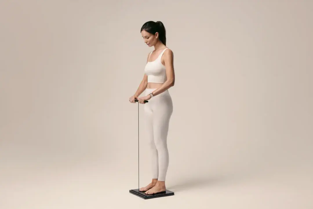 Эти весы выглядят как нечто очень торжественное: закалённое стекло с ручкой, напоминающей перекладину для подтягиваний. Стоя на весах и удерживая эту ручку на уровне бёдер около 90 секунд, вы запускаете работу 8 электродов в основании и ещё 4 электродов из нержавеющей стали на ручке. Всё это нужно не для измерения веса, а для захвата более 60 биомаркеров. Самое удивительное — они могут оценивать риски гипертонии без использования манжеты для измерения давления и даже выявлять ранние сигналы нарушения регуляции уровня сахара в крови.