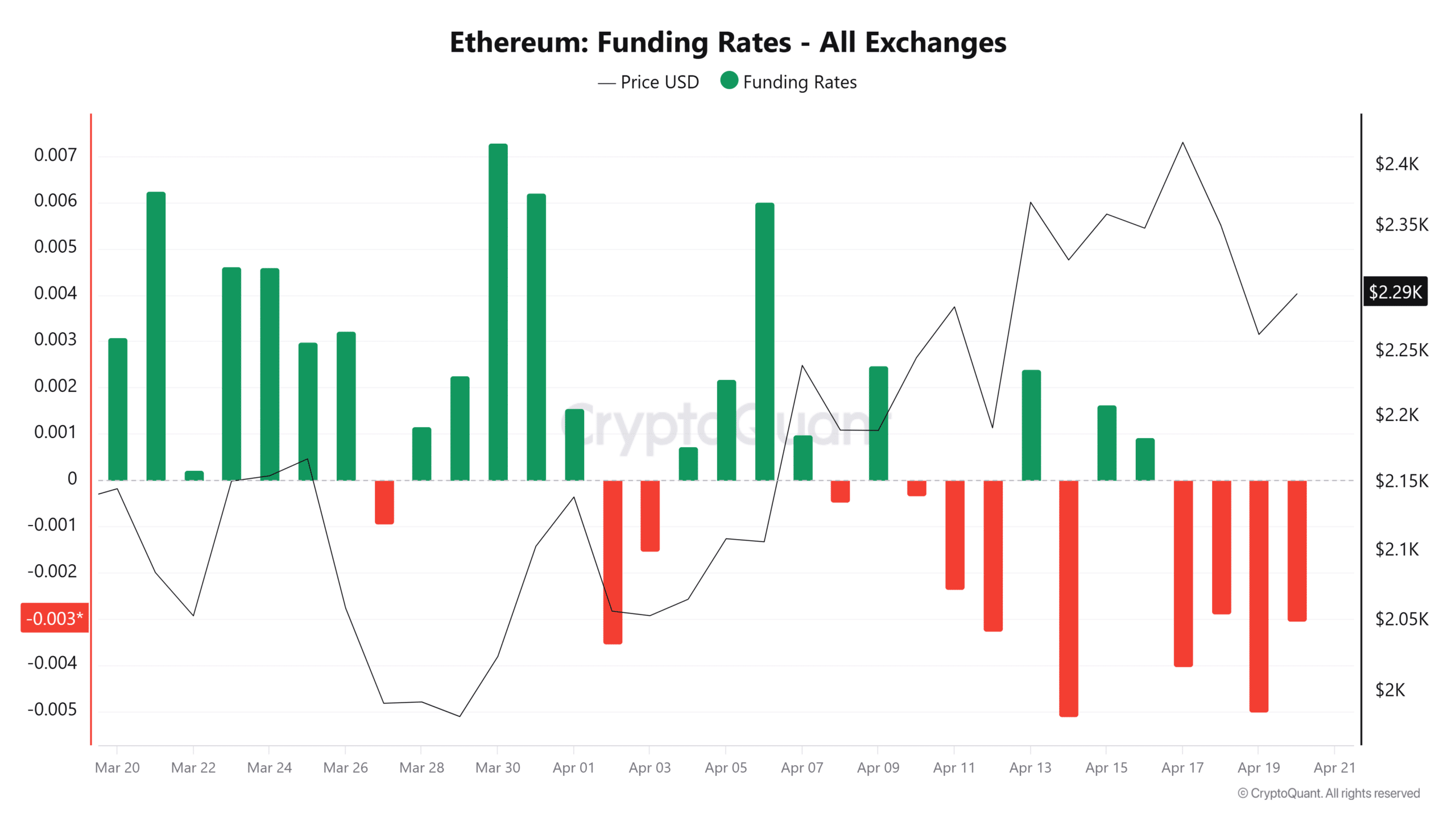 ETH показал повторное открытие новых позиций, но растущий спрос на фьючерсы остается недостаточным для краткосрочного восстановления. Фактически, альткоин находится ниже скользящей средней скользящих средних (MaMA) на уровне $2272 и положительной полосы обратной связи на уровне $2317.