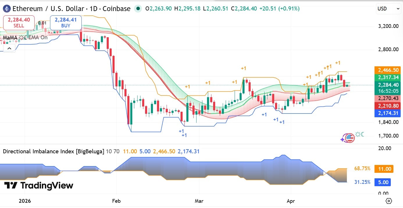 Такие рыночные условия указывают на то, что рынок застрял в точке принятия решения. Если бычье давление останется высоким, альткоин пробьет MaMA на уровне $2 270 и переместится выше полосы положительной обратной связи на уровне $2 317.