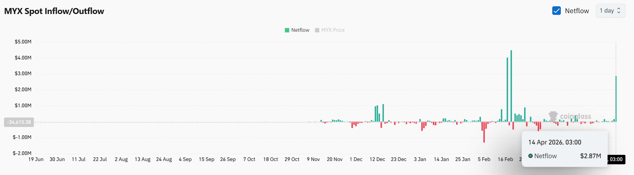 MYX вырос более чем на 109% за 24 часа, а объем торгов увеличился более чем на 300%, что свидетельствует о резком притоке участников рынка и возобновлении интереса к торговле.