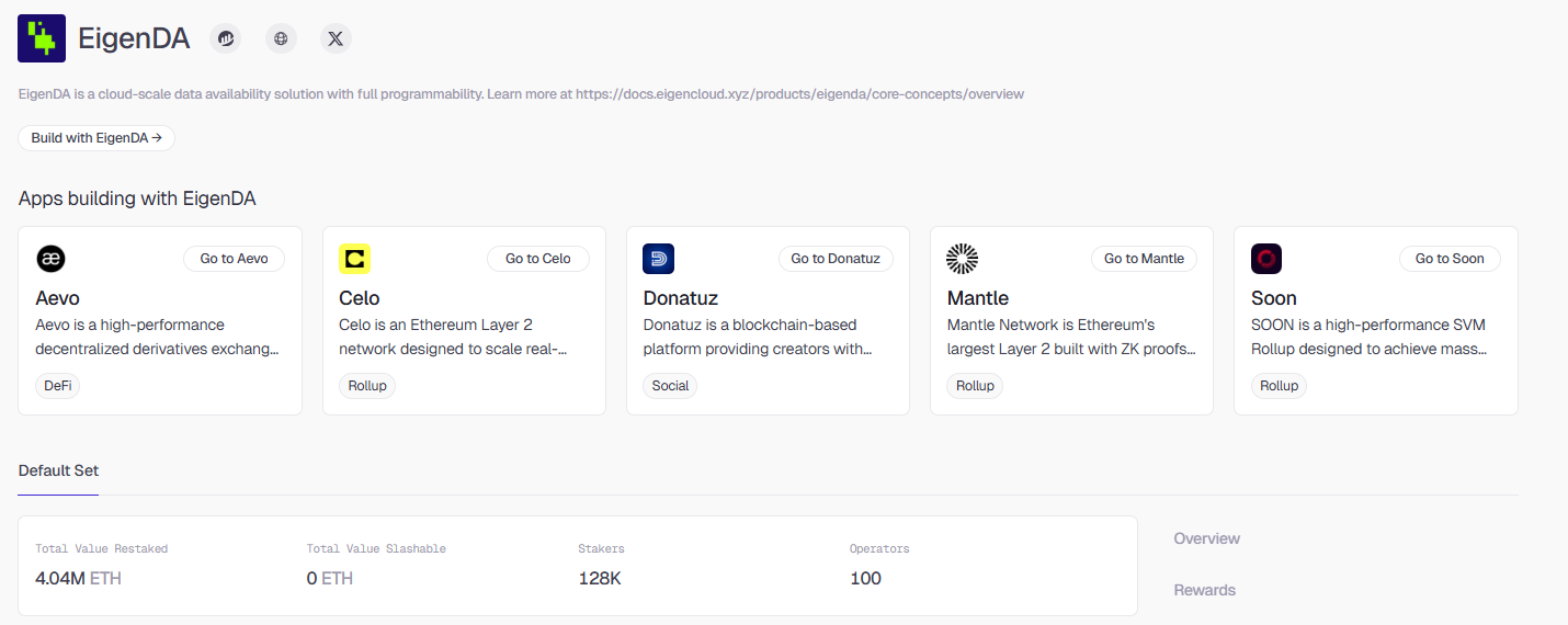 Его главное преимущество заключается в том, что он напрямую арендует существующую масштабную систему доверия Ethereum. Благодаря EigenCloud, пользователи, которые уже закладывали ETH в качестве залога в Ethereum, могут выбрать, чтобы закладывать эти активы еще и валидаторам EigenDA. Это означает, что если кто-то хочет атаковать EigenDA, на самом деле он сталкивается с барьером безопасности ETH, оцениваемого в сотни миллиардов долларов. Для разработчиков Rollup это позволяет избежать огромных затрат на создание собственной безопасной сети и сразу же получить безопасность, как при «переезде с чемоданом».