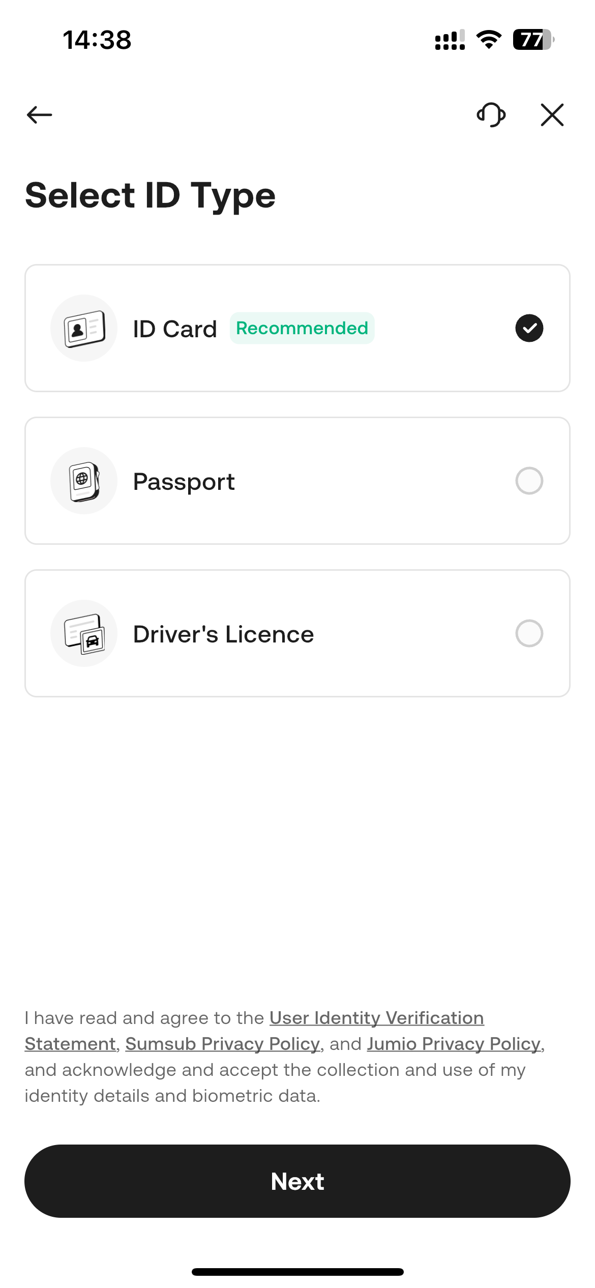 To pass KYC, you’ll need to submit your ID documents and complete face verification. This is part of our commitment to curbing illicit activities such as money laundering and terrorist financing.