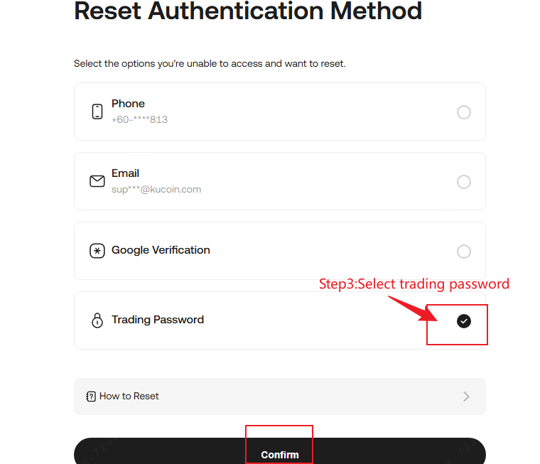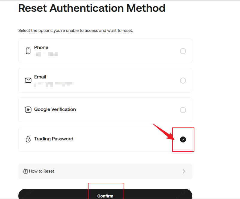 iii. Choose"Trading password" and confirm.Complete the Identity Verification process, following the instructions closely to request a manual password reset. Once you’ve appealed,your request will be processed in approximately 1–3 business days.