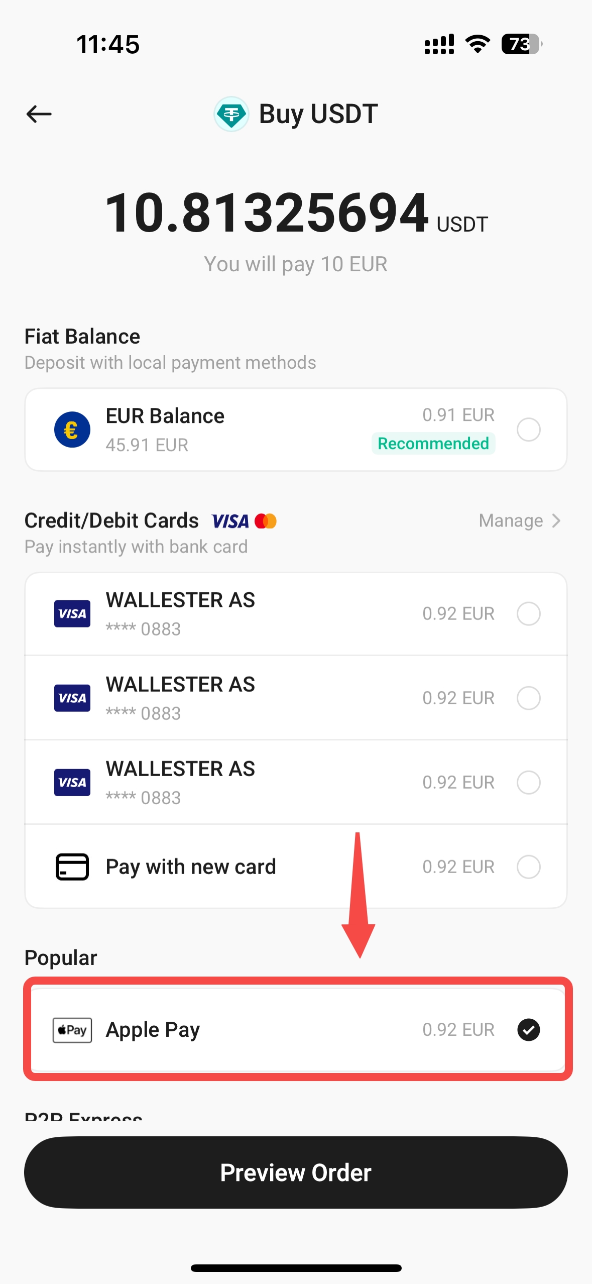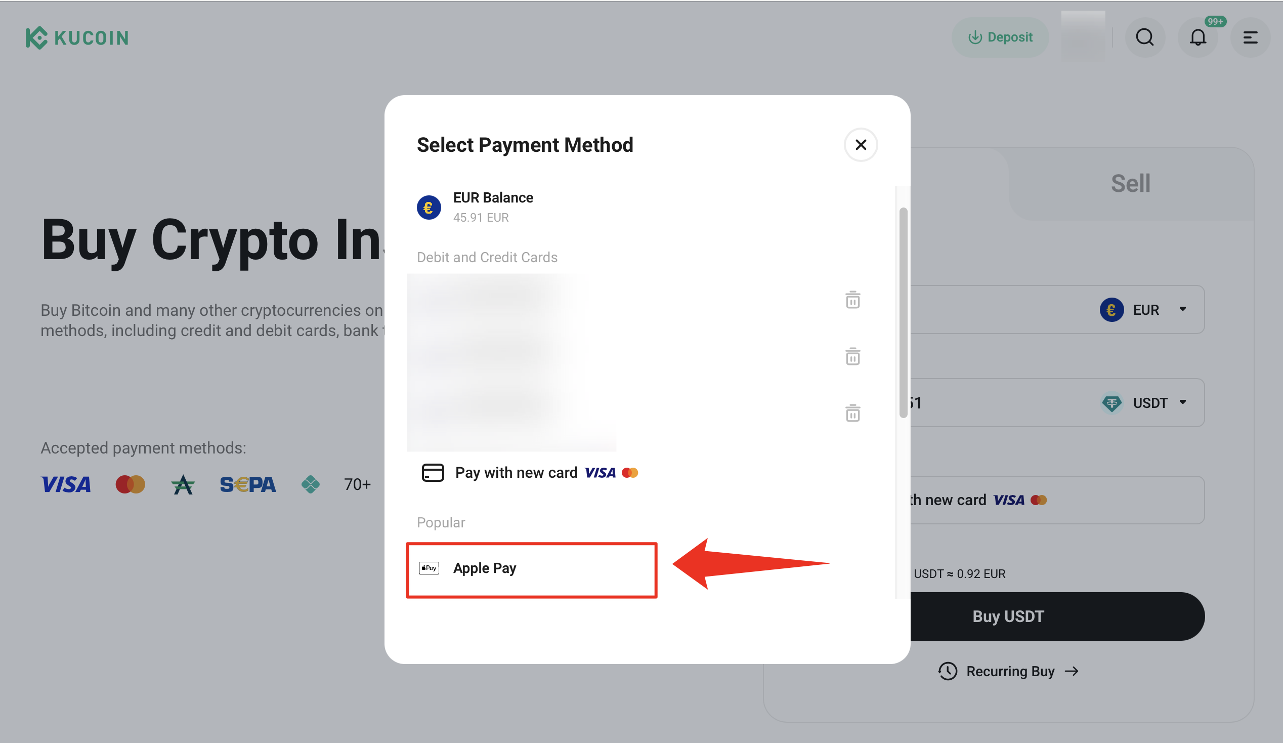 - Apple Pay (VISA/MasterCard) on KuCoin is different from P2P Express and third-party Apple Pay services.