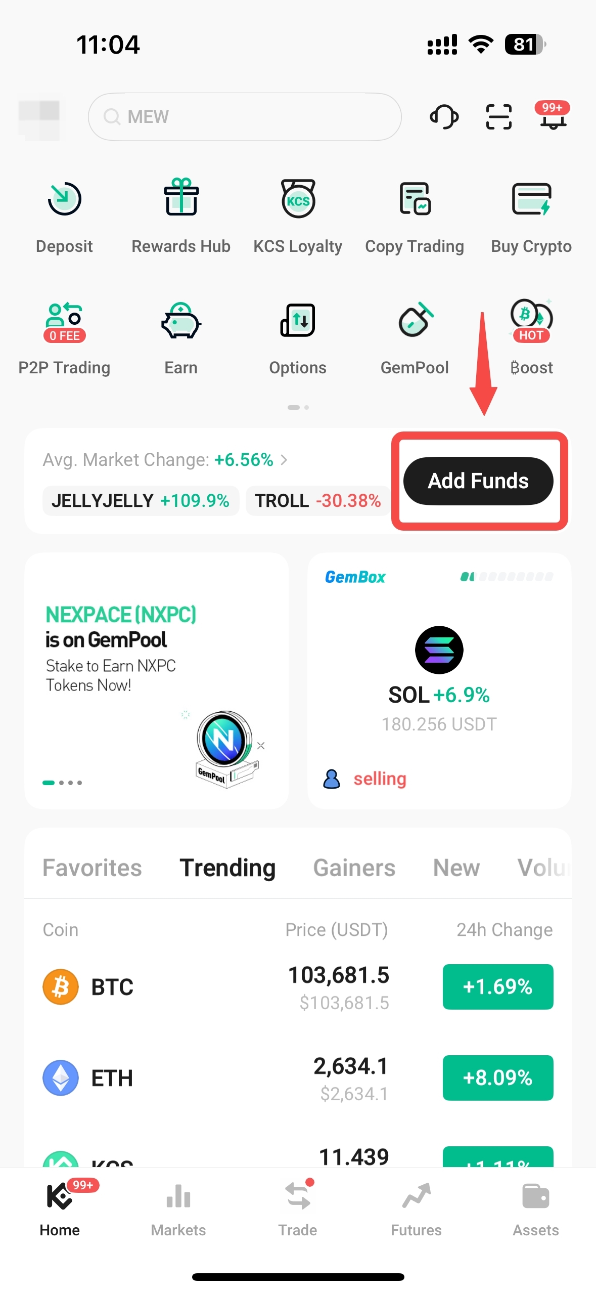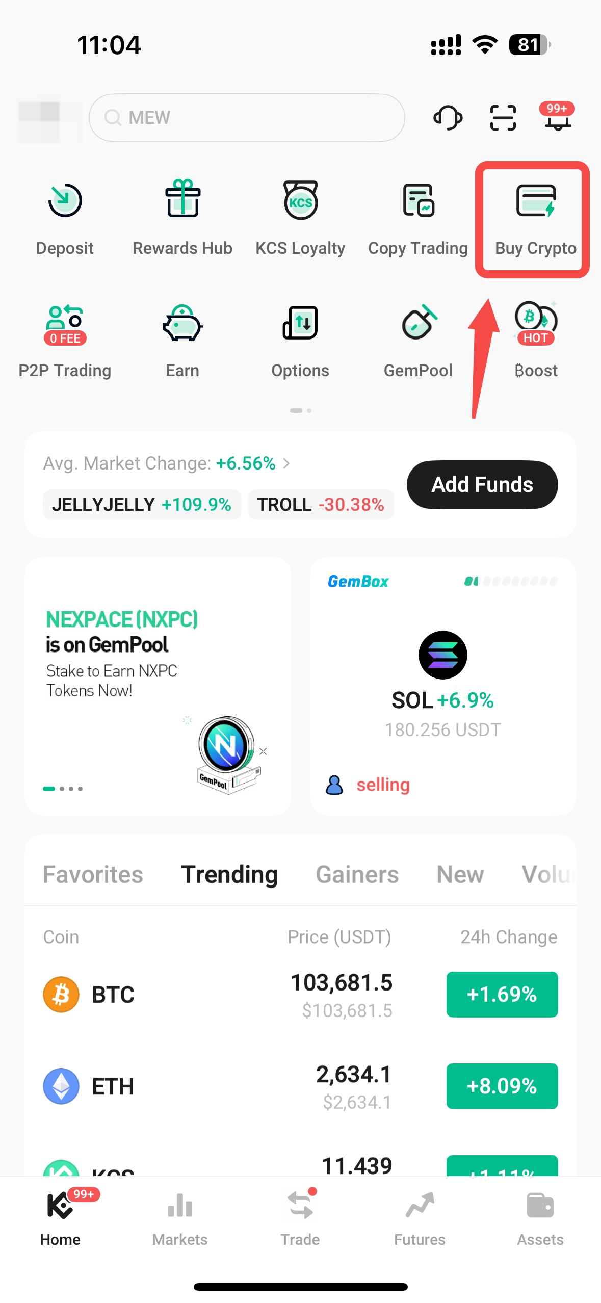 i. Log in to your KuCoin account Navigate to Buy Crypto → Fast Trade.