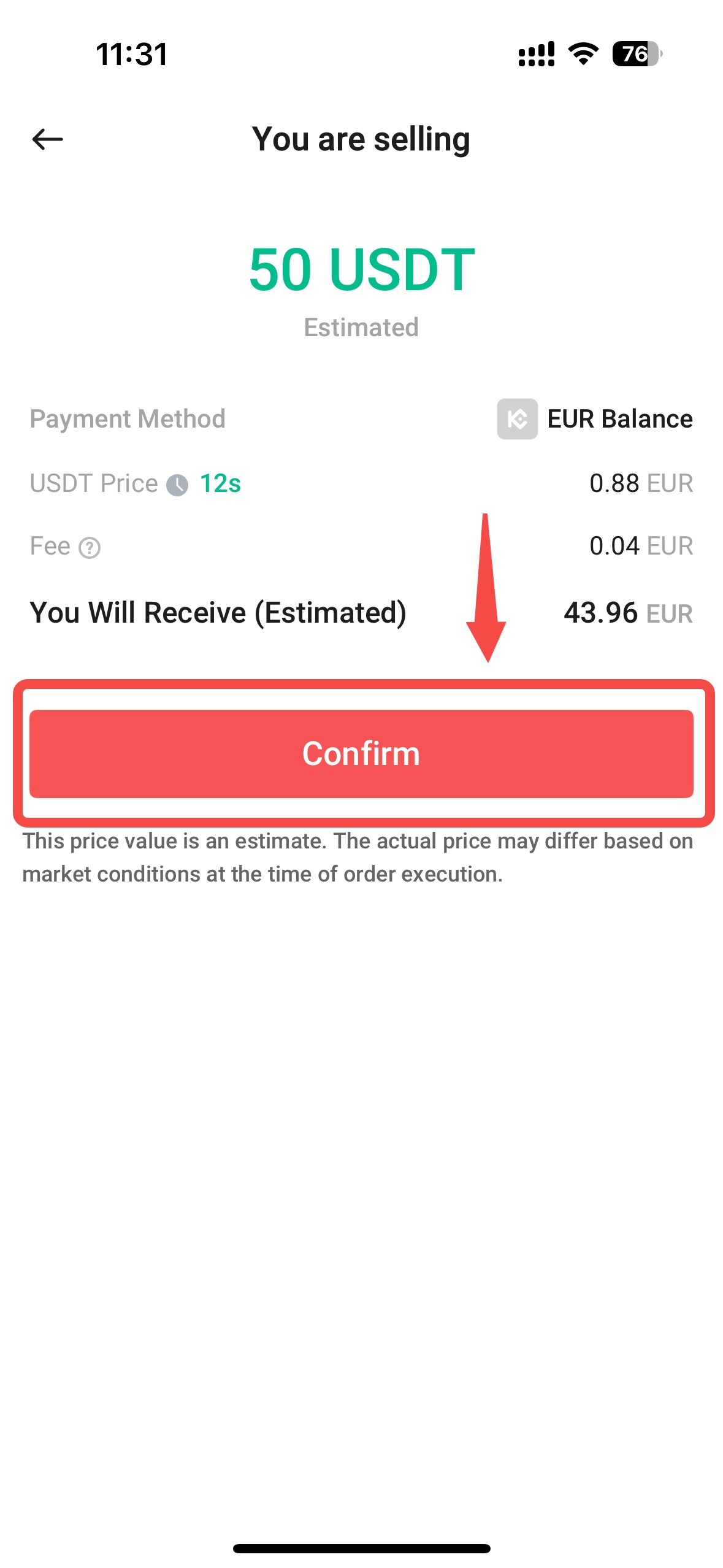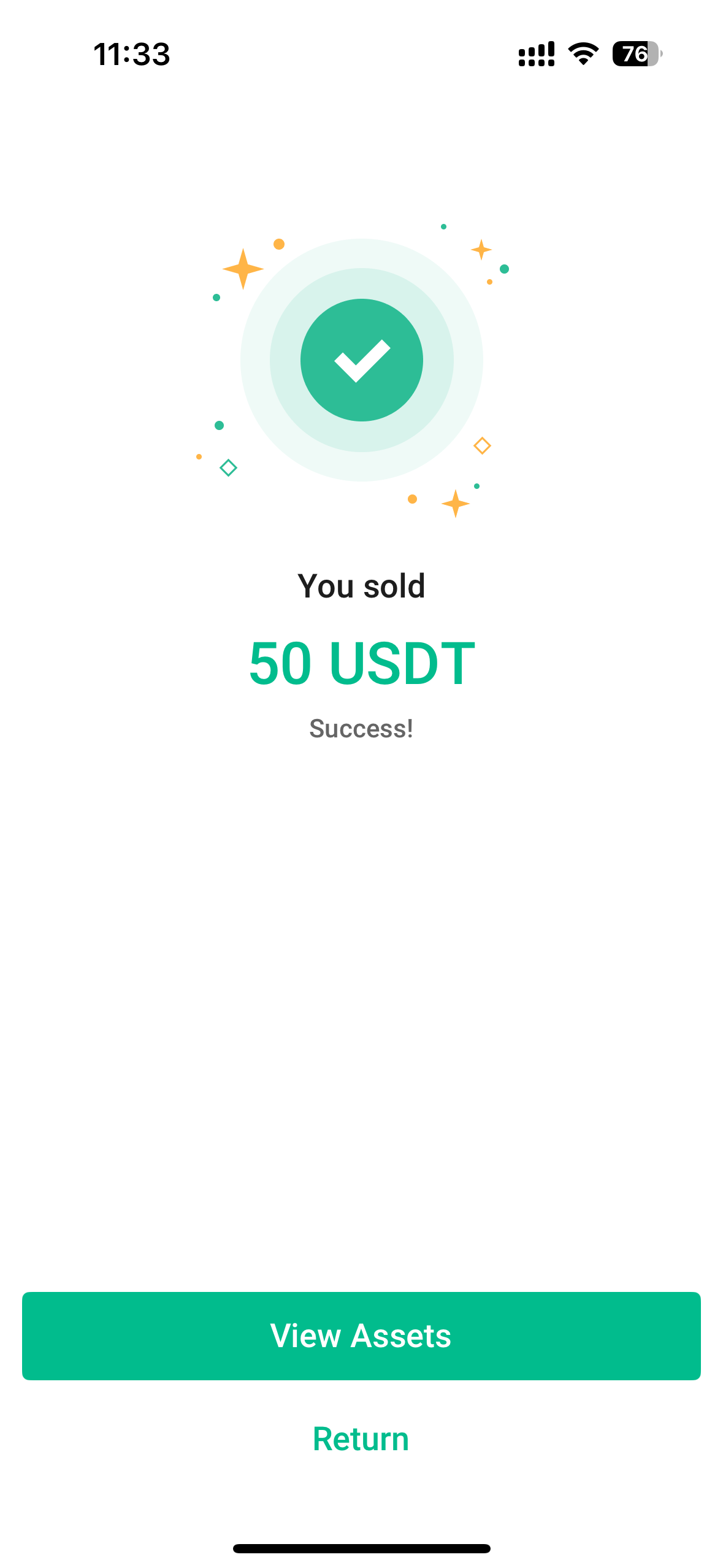 iii. Review the order Confirm the amount you’ll pay and the amount of crypto you’ll receive. Tap Confirm to proceed.
