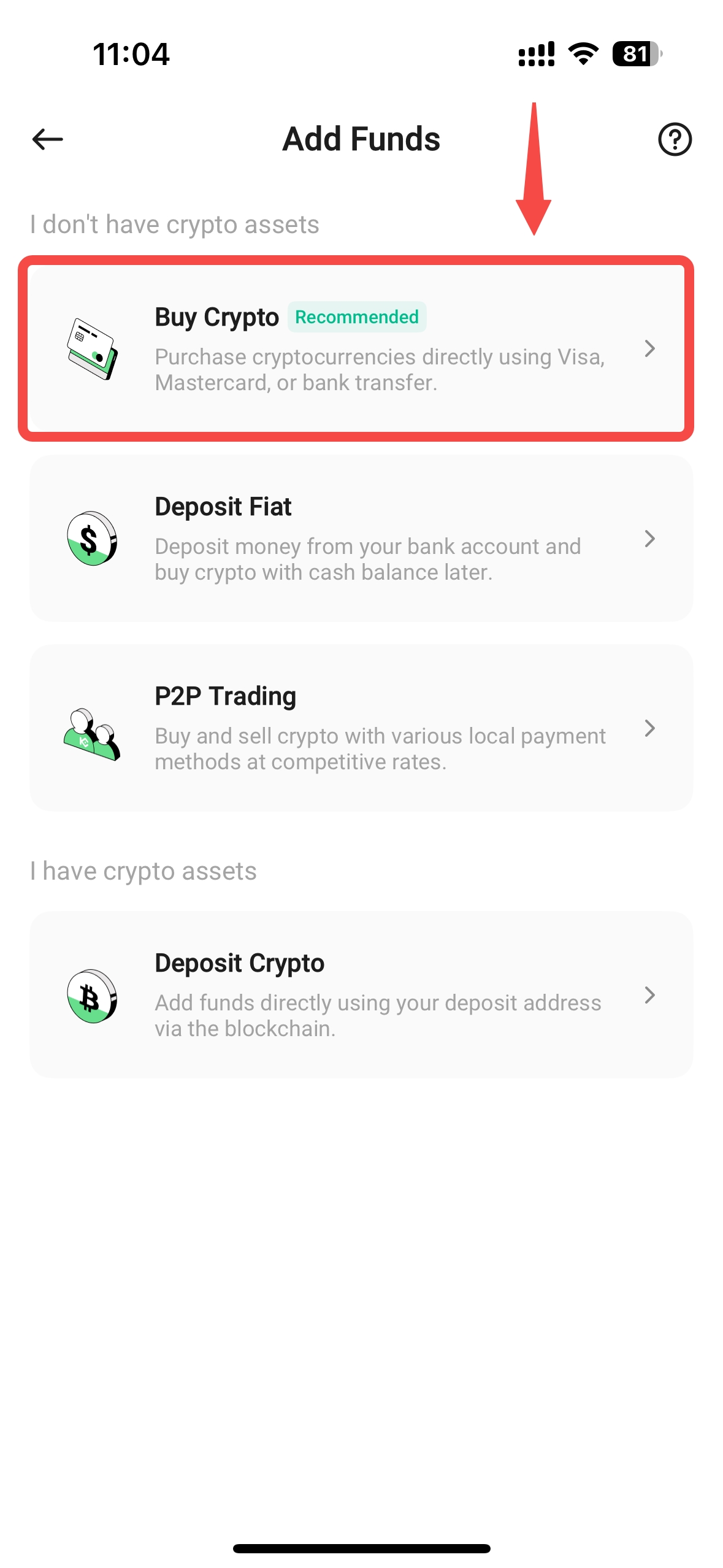 ii. Choose your currency Select the currency you want to pay with and the crypto you want to buy. Select Buy. Under Payment Method, select Fiat Balance (e.g., EUR Balance), and tap Preview Order.