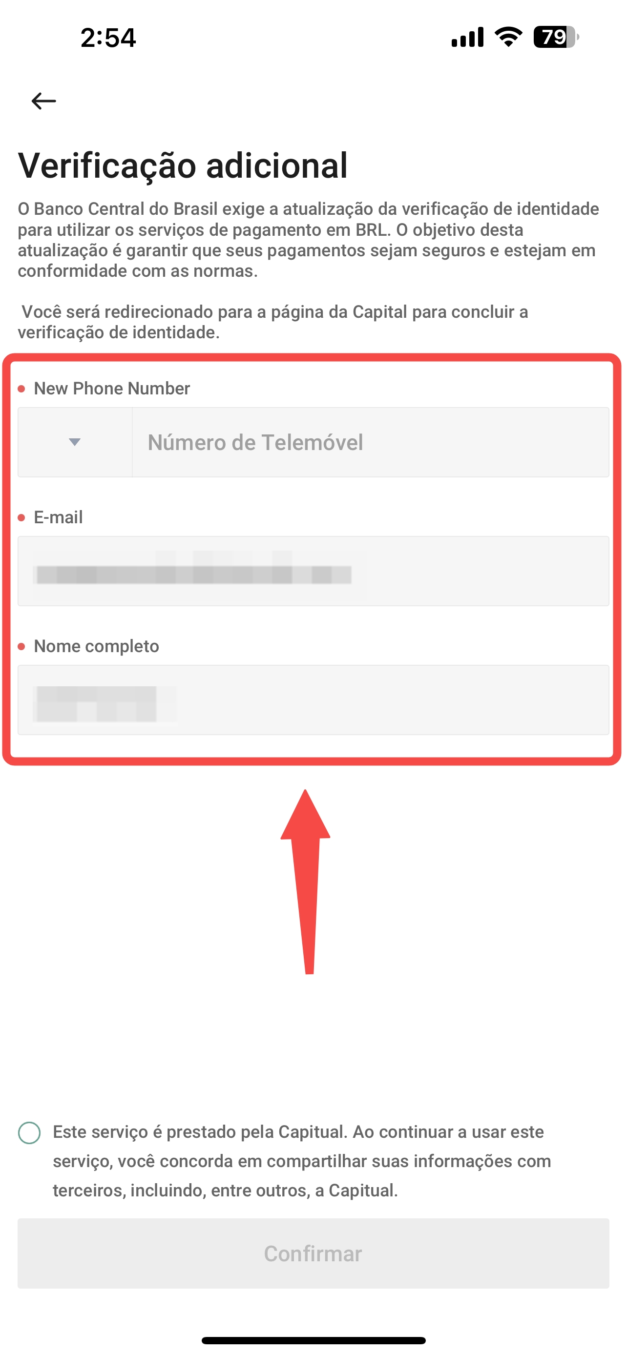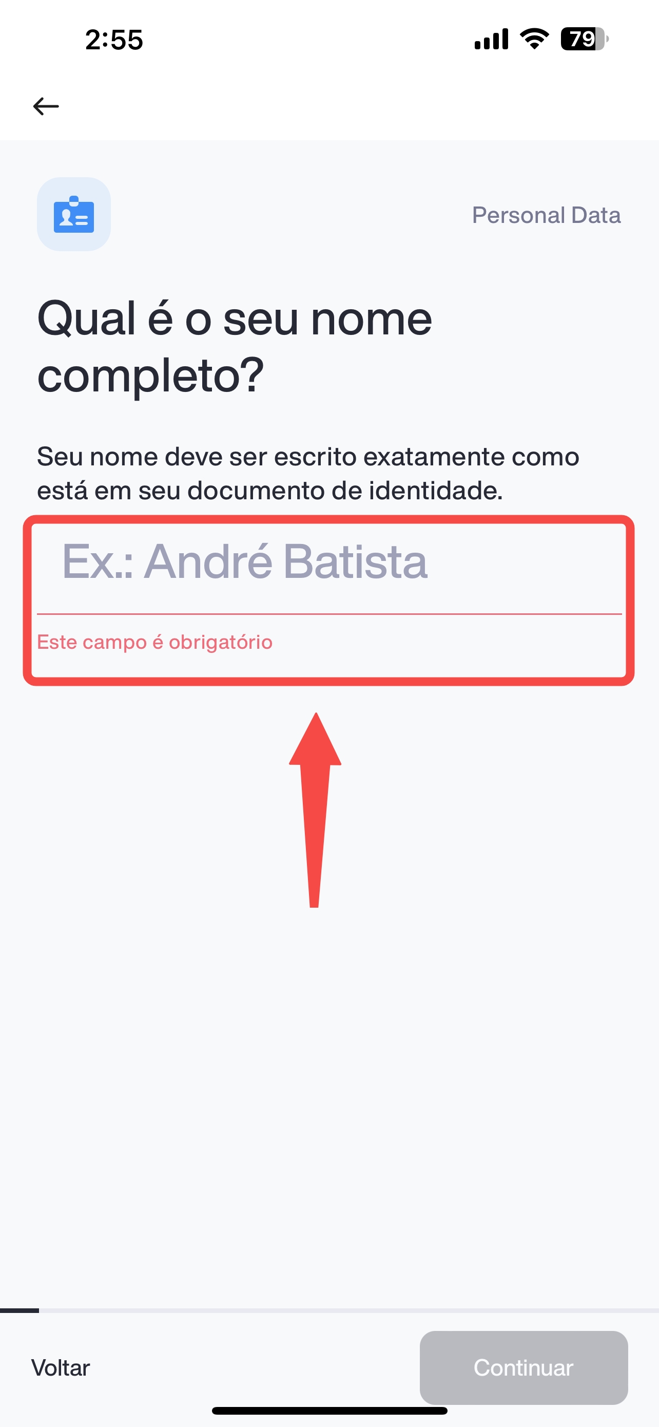 Click Next and provide the required information, including your: CPF number, full name, photo of your ID, and selfie.