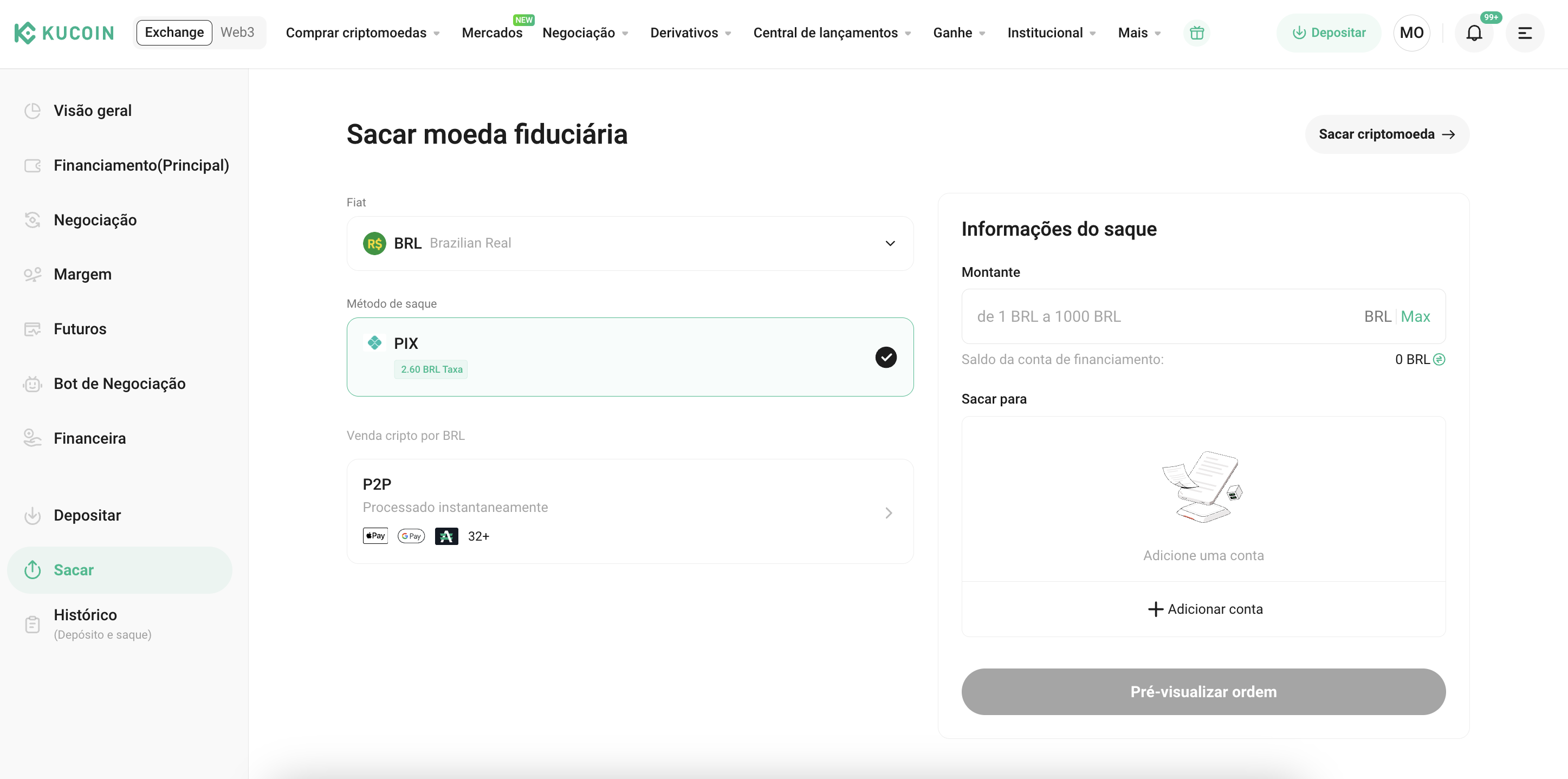 • To comply with anti-money laundering (AML) regulations and ensure the security of your funds, you must first complete a BRL deposit using the same bank account. Once the deposit is made, the bank account will be automatically linked to your KuCoin account as a withdrawal method, and you will be able to proceed with withdrawals.