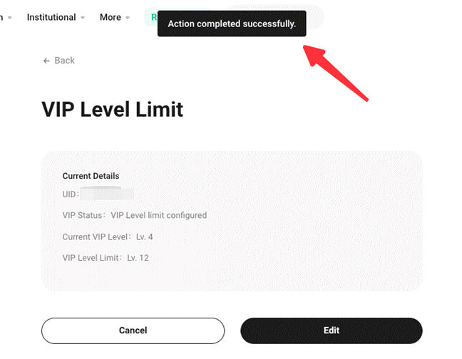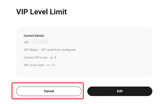 Step 3: Once confirmed, the VIP level cap will take effect immediately, and you can modify it anytime.