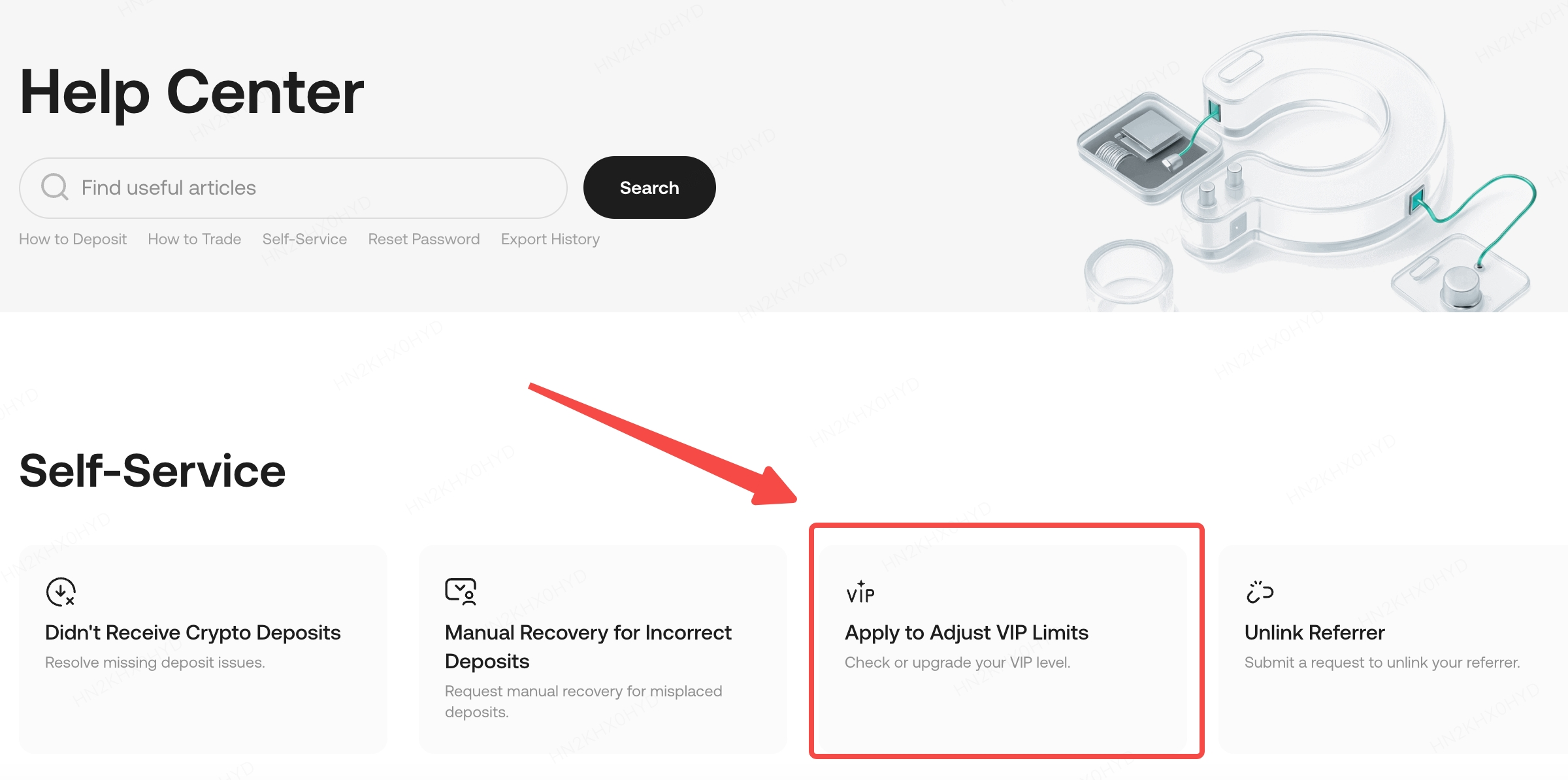 Step 1: Log in to your account and access the Help Center to find the 【Apply to Adjust VIP Limits】 feature.