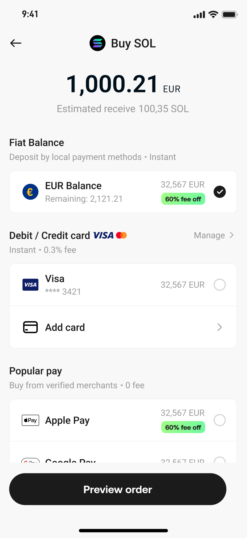 Buy Crypto Fee Coupons can be applied when purchasing cryptocurrencies using Credit/Debit Cards, Revolut Pay, Blik, or fiat balance. The actual eligible payment methods will depend on the specific coupon.