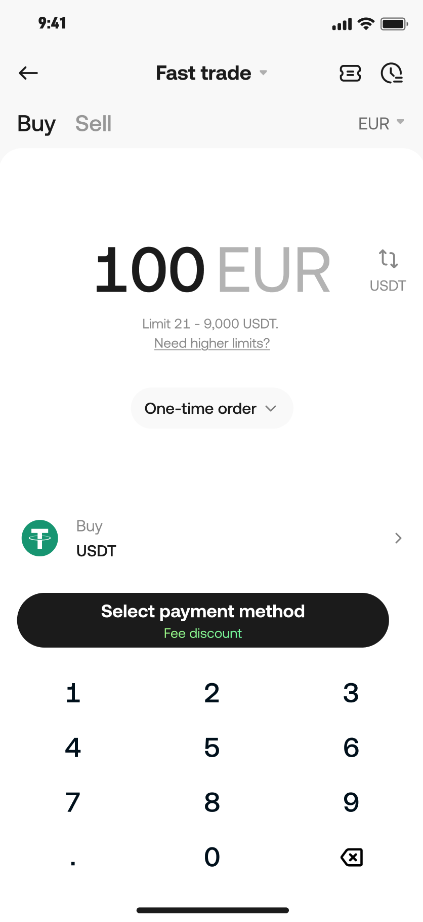 2. Enter the amount, select your fiat currency, and choose the crypto you want to buy.
