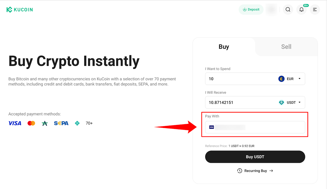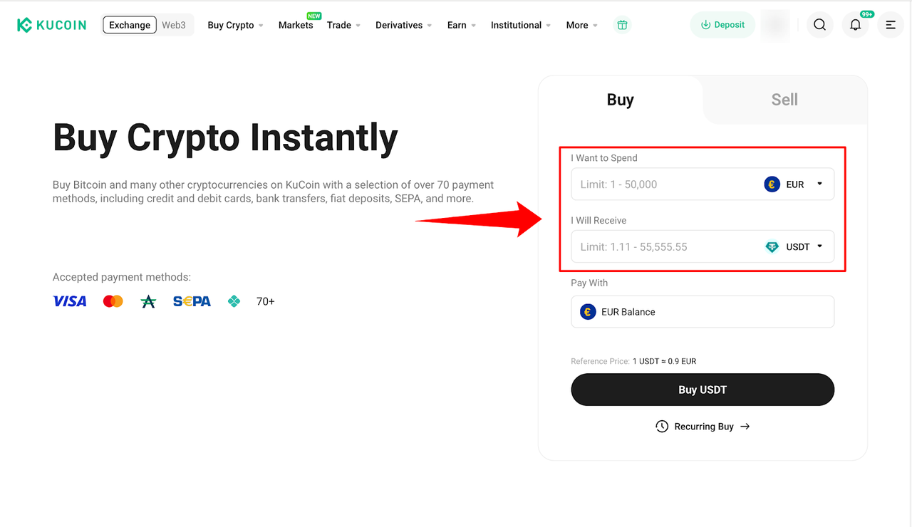 i. Log in to your KuCoin account: Navigate to Buy Crypto → Fast Trade.