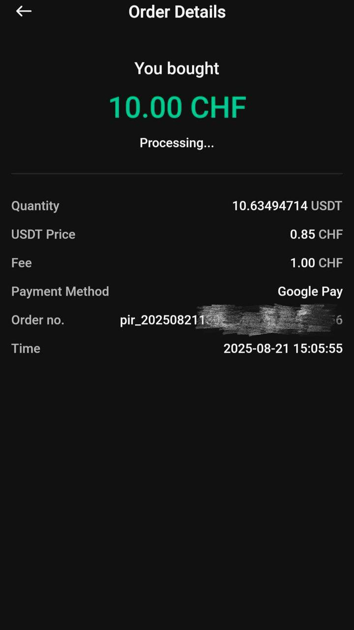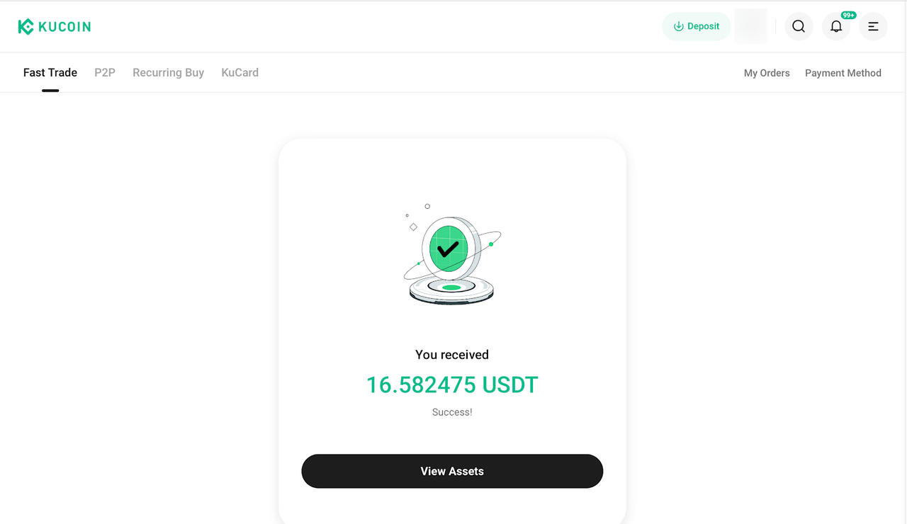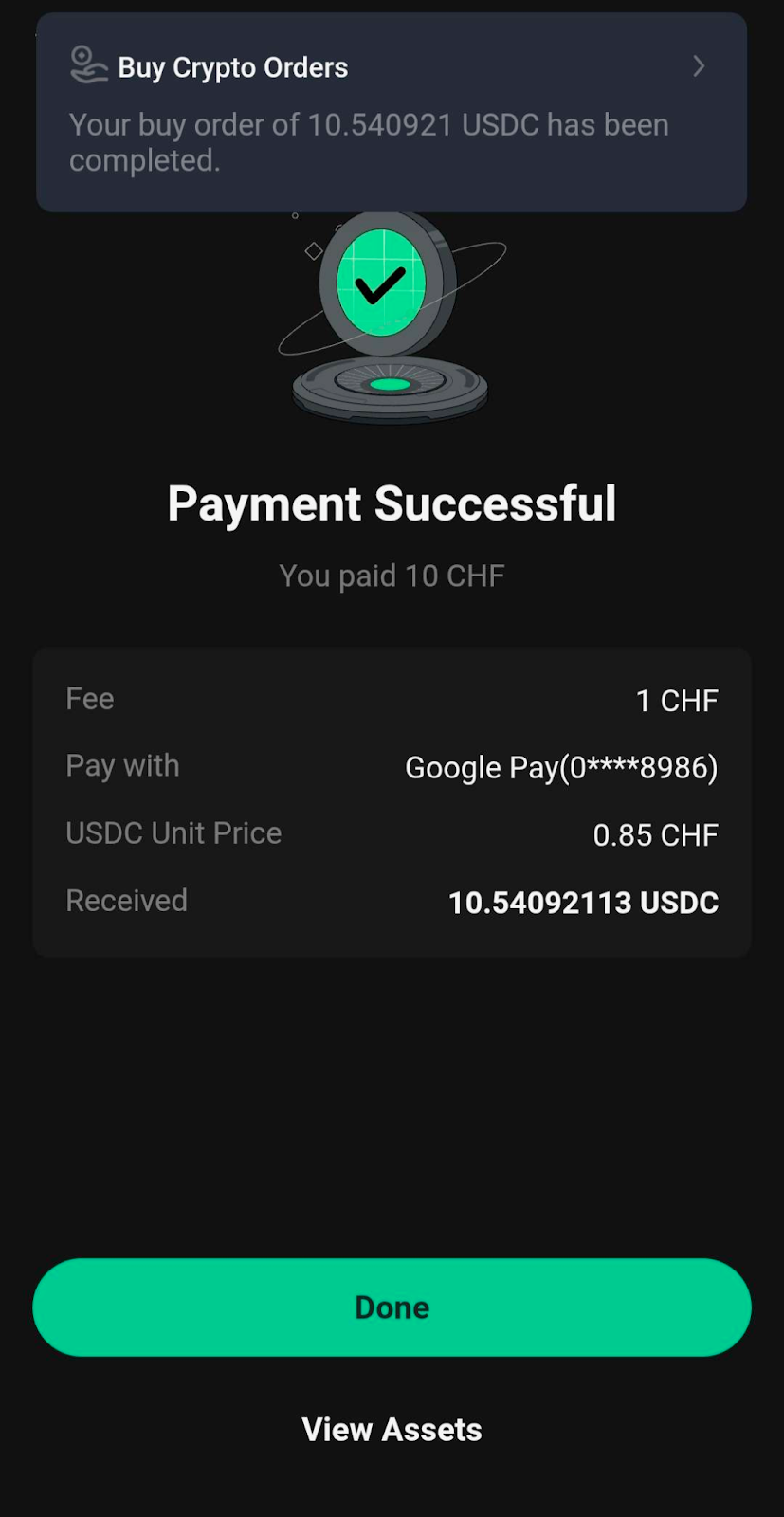Cryptocurrency purchased via Google Pay or a bank card will be credited to your KuCoin Funding Account immediately or within 24 hours. Transactions are typically completed within 10 minutes. If your payment was successful but the order expired, please contact customer support for a refund.