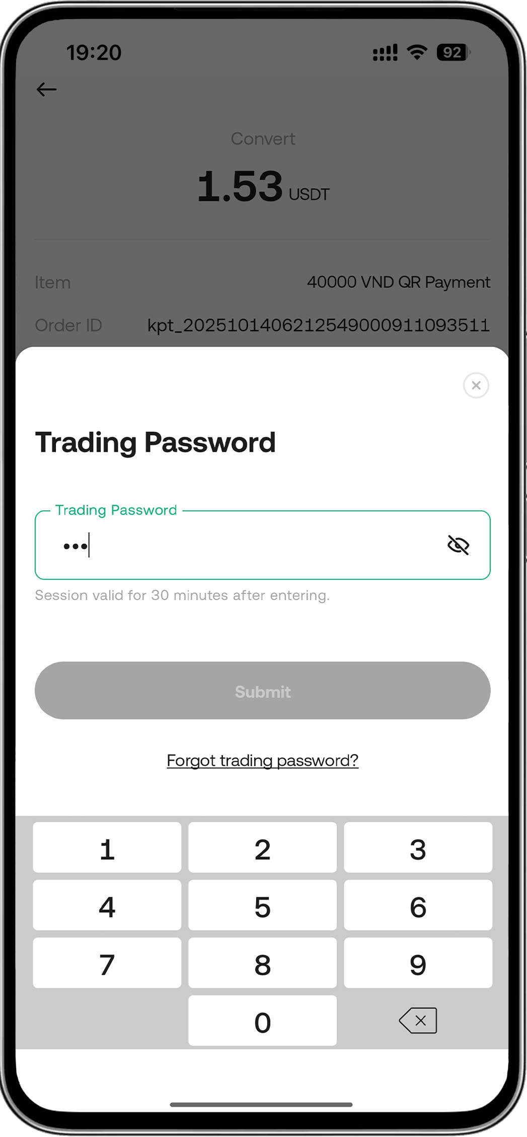 KuCoin Pay allows you to pay at supported in-store merchants worldwide. Simply scan the merchant’s QR code—shown on their website, app, or point-of-sale payment terminal—or checkout directly in the app.