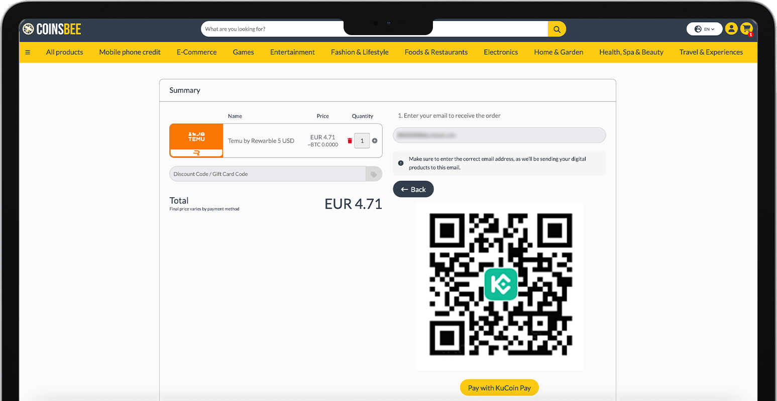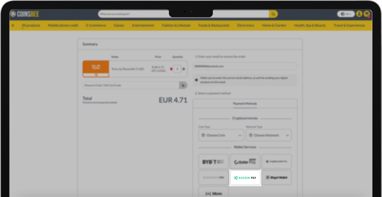 - Step 1: Select "KuCoin Pay" on Coinsbee