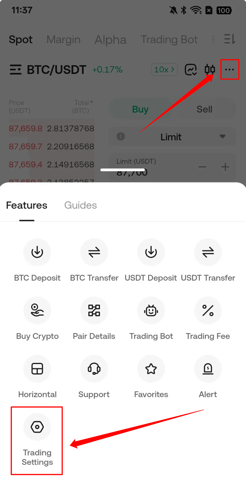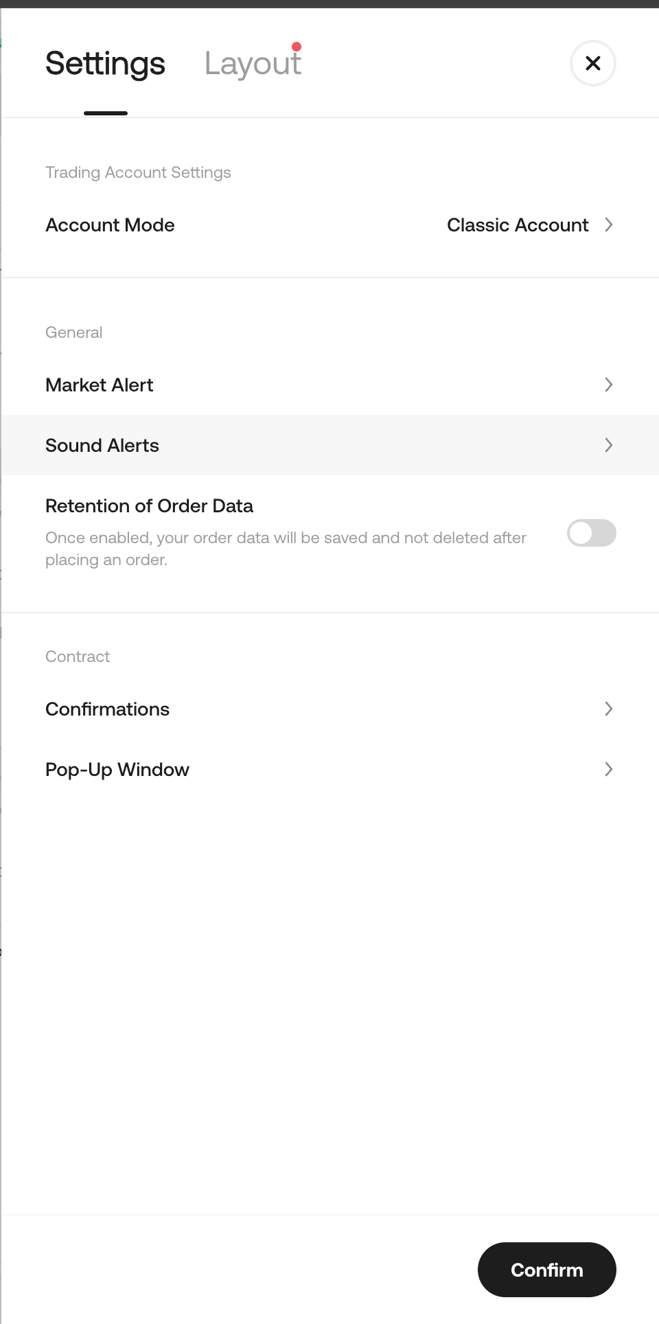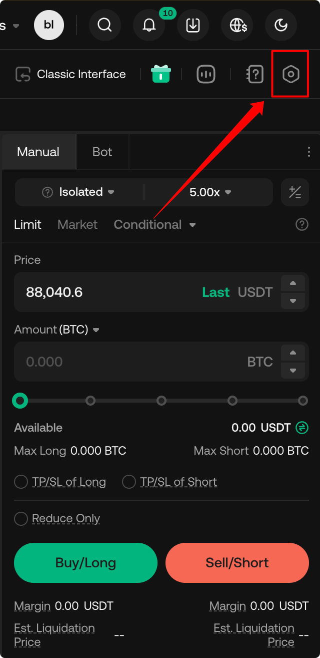 1. Step 1: Go to the upgrade entry: Trading Page - Settings - Trading Account Settings - Account Mode