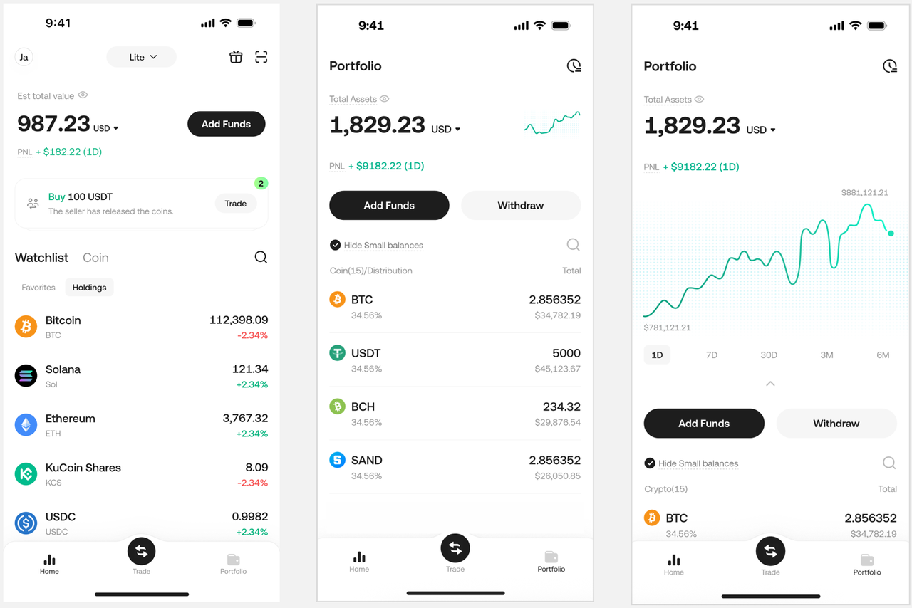 The KuCoin Lite Version allows you to intuitively view and manage your portfolio: