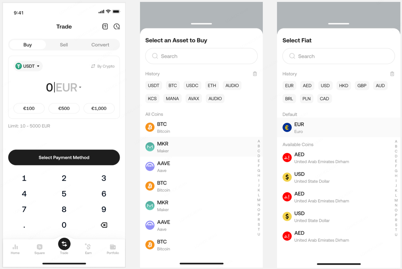 In the KuCoin Lite Version, users can purchase cryptocurrency on trade page. This is the most user-friendly way for those new to crypto. You simply need to set the cryptocurrency you want to buy and the fiat currency you wish to use. The system will then automatically display all available payment methods, such as card payments, local payment channels, fiat balance, "P2P Trading," and third-party services. After selecting your preferred payment method, just follow the on-screen instructions to complete your purchase.