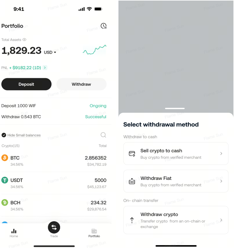 1.1 Log in to your KuCoin account and go to the Assets page. Tap "Withdraw" on the Assets page, then select "Sell Crypto" from the menu.