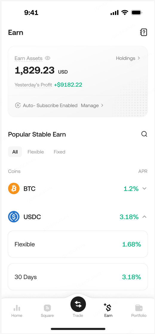 The Earn function is a one-stop wealth management service center launched by KuCoin, designed to help users improve the utilization rate of their account assets, enabling idle assets in their account to generate continuous returns. For KuCoin Lite users, we have specifically selected low-risk wealth management options with relatively stable yields.