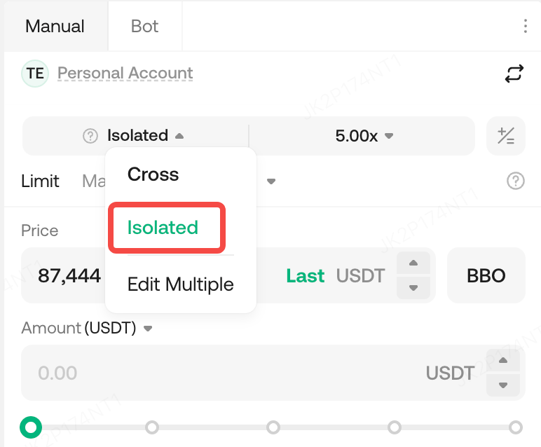 Select “Isolated Margin Mode” before placing an order