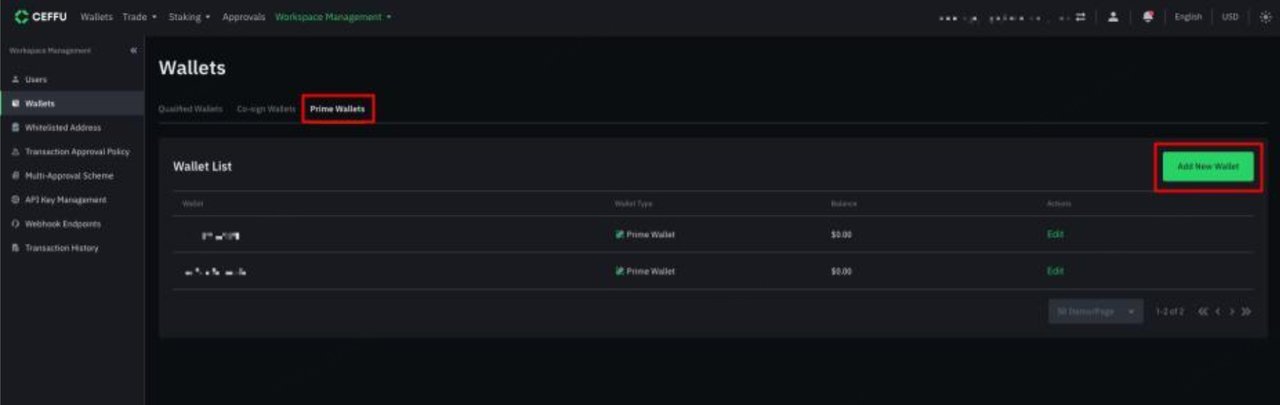 Select ‘Prime Wallets’ and ‘Add New Wallets’