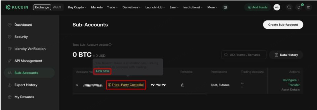 With this integration, institutional clients can now create a dedicated Custodian Sub-Account under their KuCoin main account. Each Sub-Account is directly linked (1:1) to the client’s Ceffu account, enabling transparent and verifiable asset delegation.