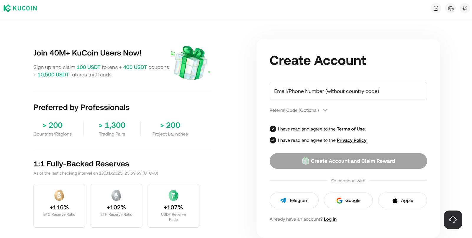 Step 1: Create Your KuCoin Account from https://www.kucoin.com/ucenter/signup