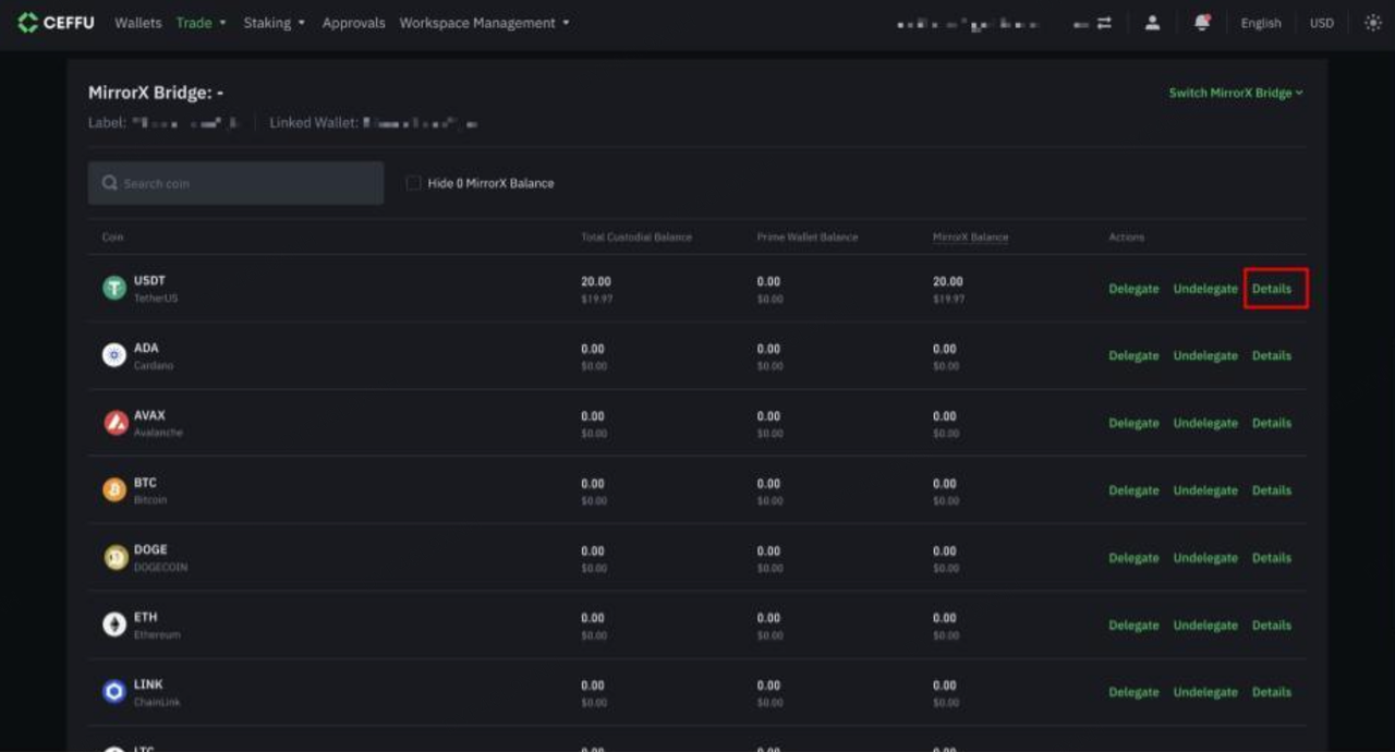 Client sees $25 BTC and $50 USDT allocated on Ceffu.