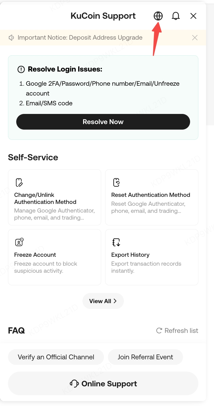 For specific issues that the KuCoin chat bot cannot handle, the KuCoin customer support team also provides 7*24 hours Live Agent/Ticket service in the KuCoin chat bot. So no worries, we're always here for you.