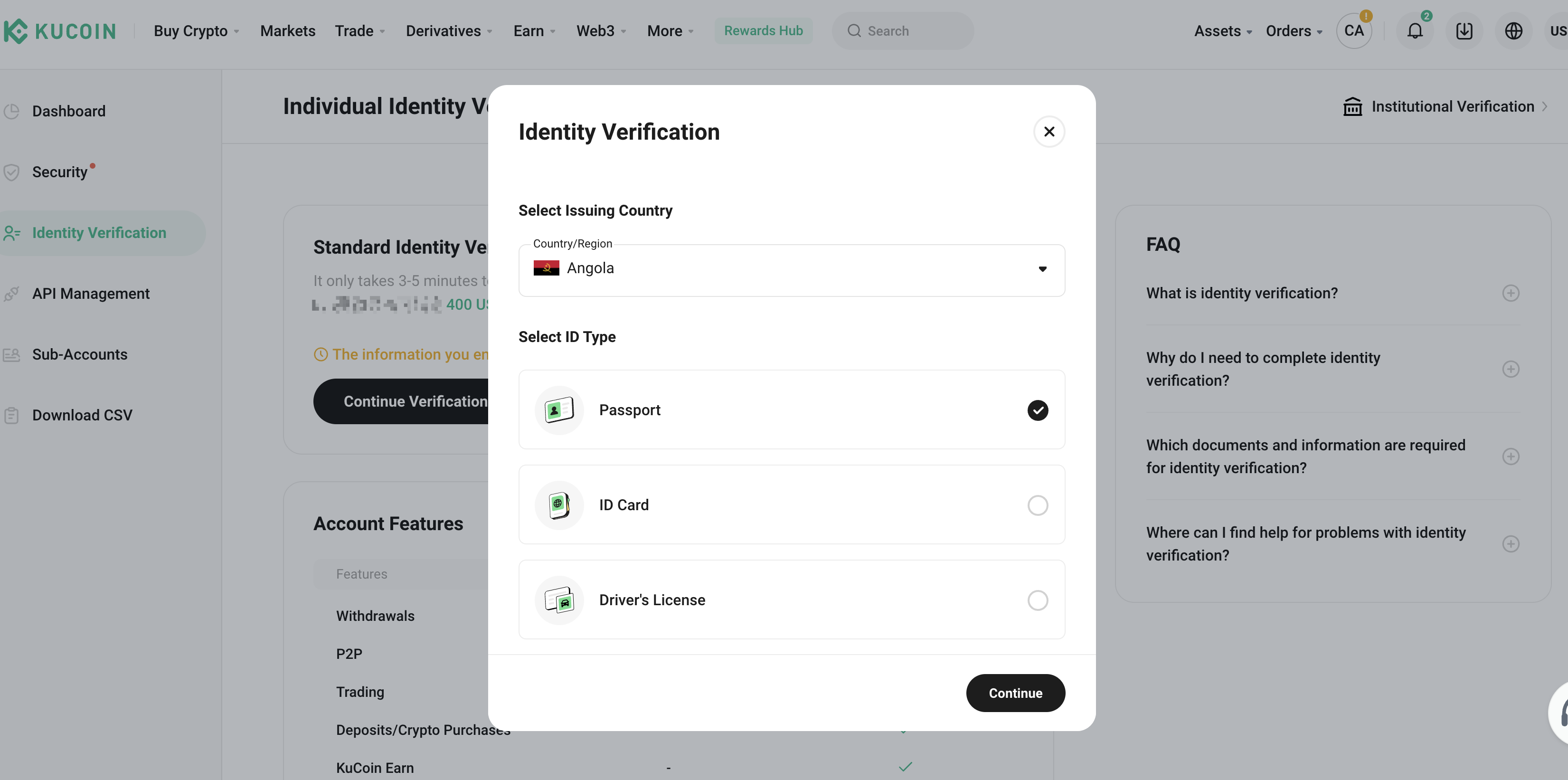 Identity Verification represents KuCoin's commitment to aligning with regulations within the cryptocurrency industry, and to mitigate activities such as fraud, money laundering, scams, and terrorist financing. After completing Identity Verification, users can enjoy higher daily withdrawal limits on KuCoin.