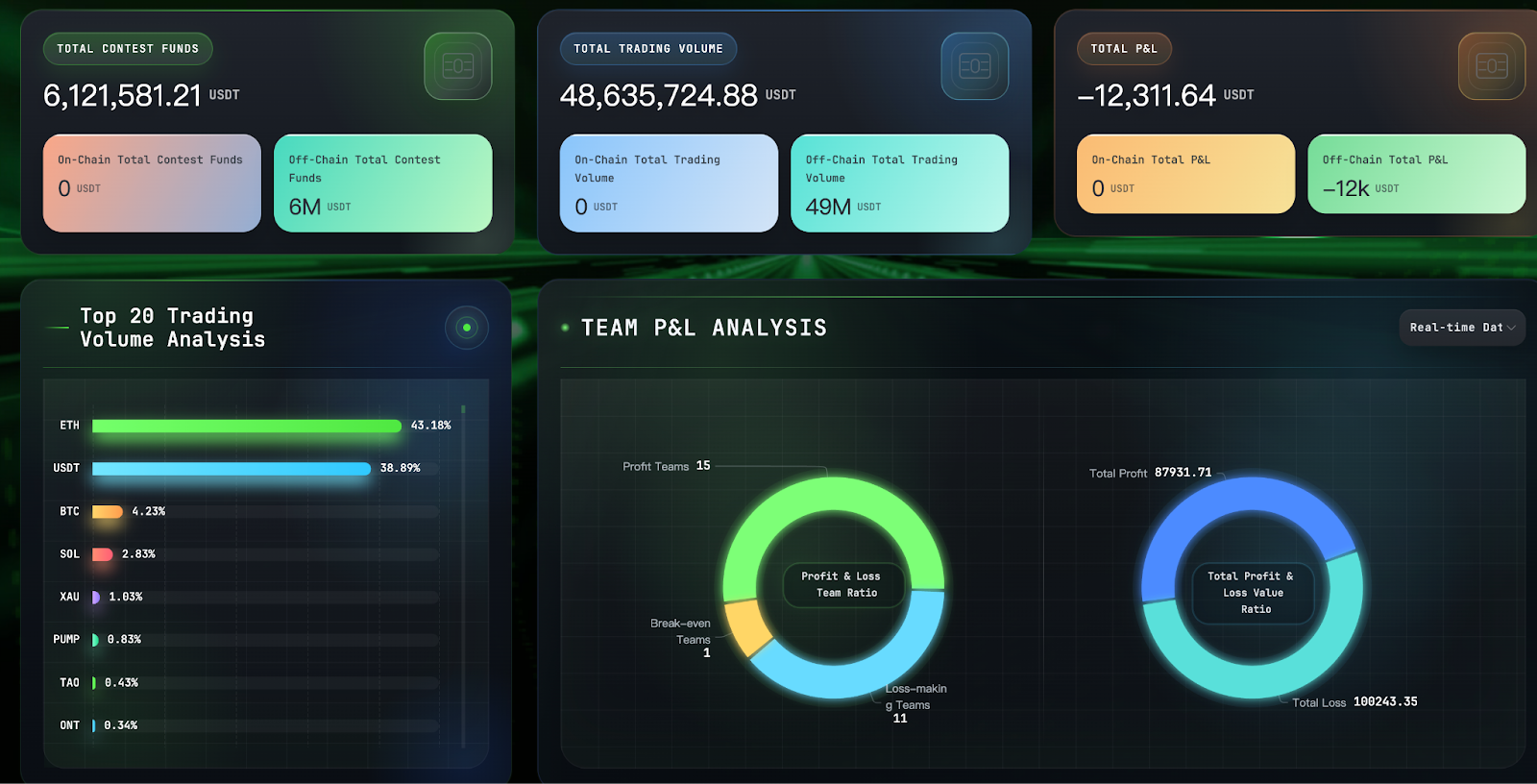จากผลงานในรายการ ทีมอันดับหนึ่งมีกำไรสะสมถึง 45,314.48 USDT โดยมีอัตราผลตอบแทน 28.04% ส่วนคะแนนระหว่างอันดับสองถึงสี่ห่างกันเพียง 0.59 คะแนน การแข่งขันในกลุ่มนำยังคงใกล้ชิด ในขณะเดียวกัน มีทีม "ปูมังกร" 3 ทีมที่เข้าสู่อันดับเก้าแล้ว จนถึงขณะนี้ ทีมทั้ง 15 อันดับแรกในรายการล้วนมีผลตอบแทนเป็นบวก งานแข่งขันได้แสดงรูปแบบระยะแรกที่ว่า "ทีมมนุษย์นำหน้าชั่วคราว ทีมปูมังกรตามทันอย่างต่อเนื่อง"(แหล่งที่มา:DeAIExpo)