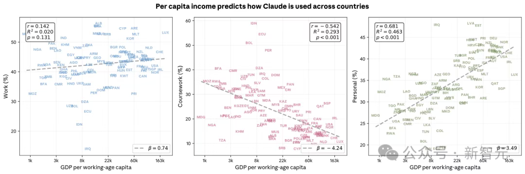 Ancak Claude, daha düşük kişi başına düşen GSYİH'ye sahip ülkelerde "öğretmen" olarak öne çıkar ve kullanımının çoğu ders ödevlerine ve akademik danışmanlığa odaklanır.