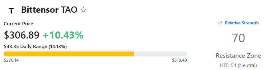 Geçen hafta, TAO diğer bir iki basamaklı günlük kazanç yaşadı, bu da NVIDIA CEO'su Jensen Huang ve ünlü girişimci Chamath Palihapitiya'nın Bittensor'un potansiyelini vurgulamaları sonucu oldu. Tartışmaları, Andrew Crypto ve Altcoin Sherpa dahil birçok analistin dikkatini çekti. İlki, bu yılın sonlarına doğru 500 dolar yönünde volatil bir yükselişi öngördü, diğeri ise NVIDIA'nın patronundan gelen bu destekin varlığın sağlam bir yatırım haline gelmesini sağladığını düşündü.