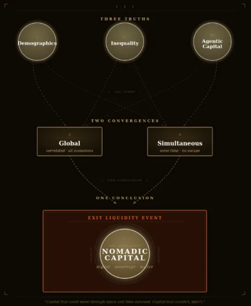 Gerçekten sahip olmanız gereken, göçebelerin sermayesidir. Bu sermaye, nesiller arası nüfus yapısı, siyasi sınırlar ve yapay zeka doğurgan ekosistemleri arasında özgürce hareket edebilir; para birimlerinin 'Hormuz Boğazı'nı atlayabilir. 21. yüzyılda göçebelik, dijitalleşmedir. Spesifik yatırım araçları bireyden bireye değişir; radikal yatırım teorisi, uygulanabilir bir çerçeve sunar: %60 uyumlu varlık ve %40 riske karşı koruma varlığına yatırım yapın. Ancak yukarıdaki üç koşulu dikkatlice karşılayarak karar verirseniz — gençlerin nihayetinde ihtiyaç duyacağı varlıkları tutarak, hükümetlerin erişemeyeceği varlıkları tutarak, kendi ekonomik sistemlerinde gerçek anlamda ticaret edilebilir varlıkları tutarak — sonuç tahmin değil, kaçınılmaz olur. Belirsizlik nihayetinde kesinliğe dönüşür.