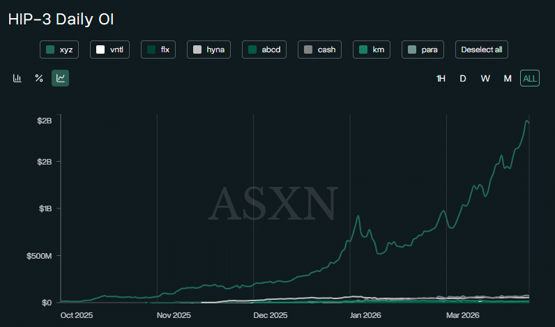 Aslında kriz, platformda kripto olmayan varlıkların (HIP-3 olarak da bilinen) alım satımını artırdı. Q2'ye girdiğimizde HIP-3'in büyümesi azalmadı ve daha geniş piyasa duygunun iyileşmesi durumunda bu, altcoin için daha fazla yükseliş momentumu sağlayabilir.