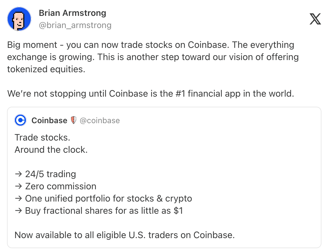Coinbase, CEO Brian Armstrong'ın "her şeyin borsası" olarak adlandırdığı şeyi inşa ediyor. 2026 yol haritasında, bu, kripto para, hisse senedi, tahmin pazarları ve ticari malları spot, futures ve opsiyon ticaretiyle entegre etmek açısından şirketin öncelikli görevi olarak listelenmiştir.