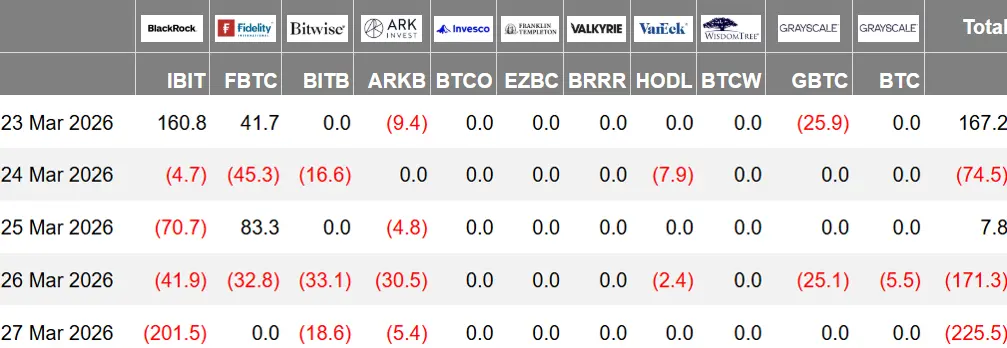 На цьому тижні BTC загалом впав приблизно на 3,4%, а зустріч FOMC за один день спричинила витік 708 мільйонів доларів США з ETF — найбільший одноденний витік за останні два місяці; золото показало найгірший тижневий результат з 1983 року, зниження перевищило 10%. ETH показав відносно сильні результати, з чистим притоком 160,8 мільйона доларів США за тиждень — рекорд у історії.