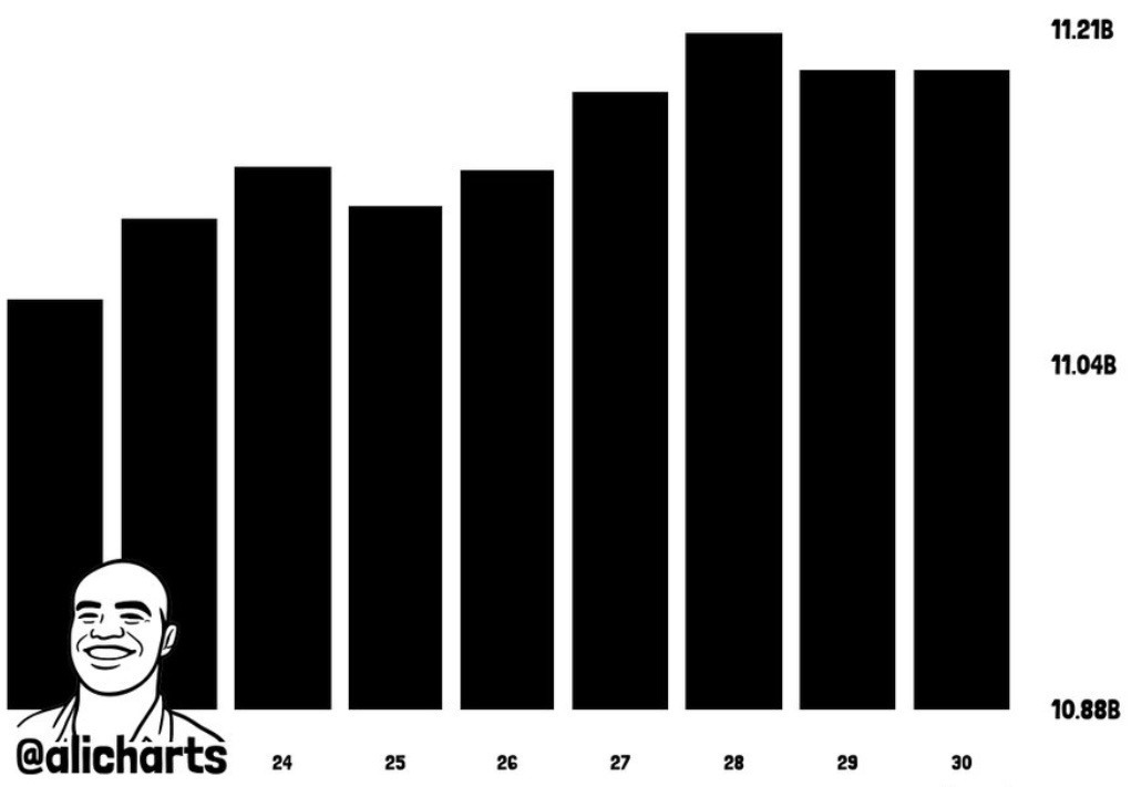 Під час цього періоду баланси китів зросли більше ніж на 120 мільйонів токенів і досягли піку в суботу, 28 березня, з обсягом у майже 11,21 мільярда токенів.